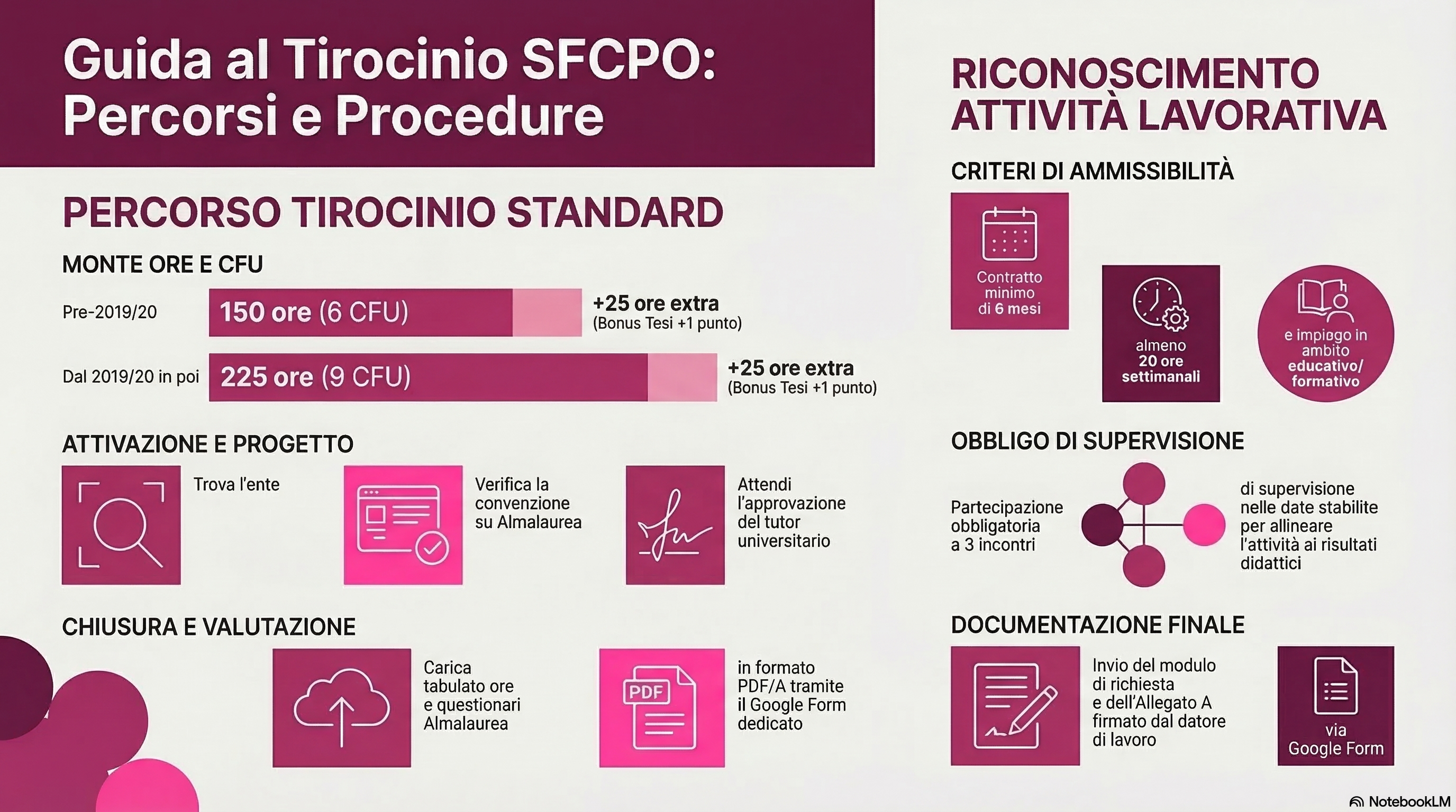 - Puoi ottenere 1 punto in più alla valutazione della tesi di laurea se svolgerai 25 ore in più di quelle previste.